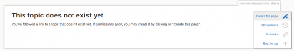 Može i ručno da se kreira se link sa: [[novi_namespace:nova_strana|start]]