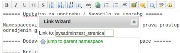 t.j. ručno sa: [[sysadmin:test_stranica|Test stranica u sysadmin namespaceu]]